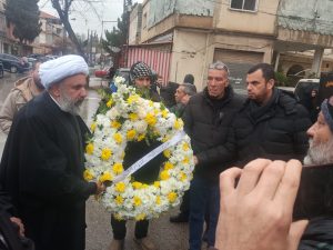 وكان وفد من حزب الله قدم اكليل من الورد باسم قيادته للاخوة في قيادة حركة امل وشعبة تمنين التحتا عند وصول جثمان الشهيد إلى بلدته